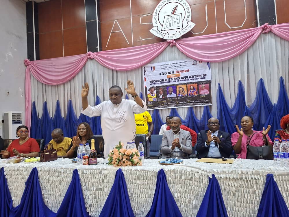 The Department of Business Education, Faculty of Technology and Vocational Education, Nnamdi Azikiwe University, Awka, on Tuesday, February 24, 2026, organized a high-level Technical Workshop on the theme, “Technicalities and Application of Artificial Intelligence (AI) in Business and Education,” at the ASUU-NAU Secretariat.