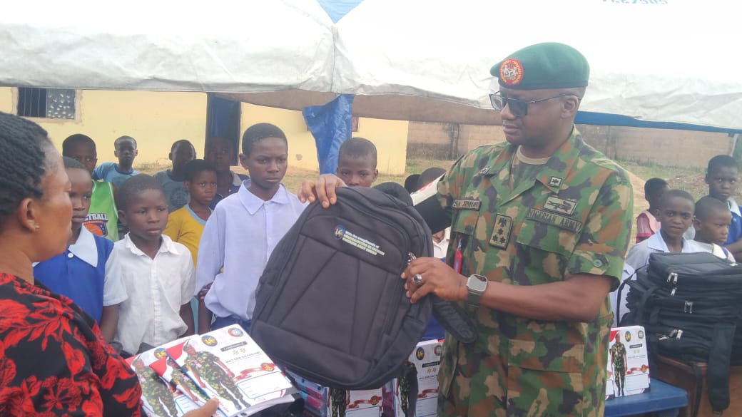 The Army as is their tradition of academic excellence and Civil/Military relationship decided to put a smile on the faces of the pupils of the the school by sharing out quality schools bags and exercise books to give them a sense of belongings and inspired them to pursue academic excellence while creating an atmosphere of Comradie with the community.